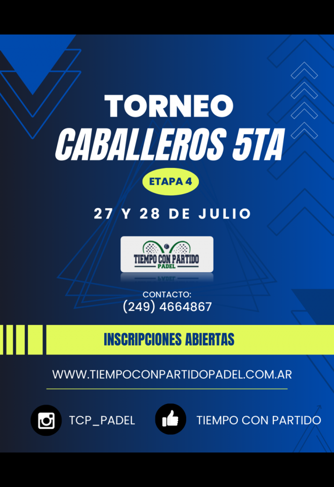 »» Evento: Caballeros 5ta - Etapa 4 »» Localidad: Tandil »» Fechas: 27/07/2024 al 28/07/2024
