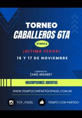 »» Evento: Caballeros 6ta - ULTIMA FECHA »» Localidad: Tandil »» Fechas: 15/11/2024 al 17/11/2024